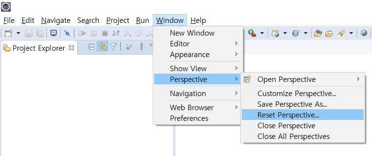 이클립스 - Window - perspective - Reset Perspective