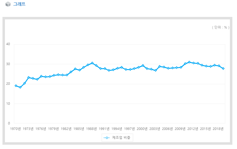 제조업은 30%를 유지 하고 있는것을 알수 있습니다.
