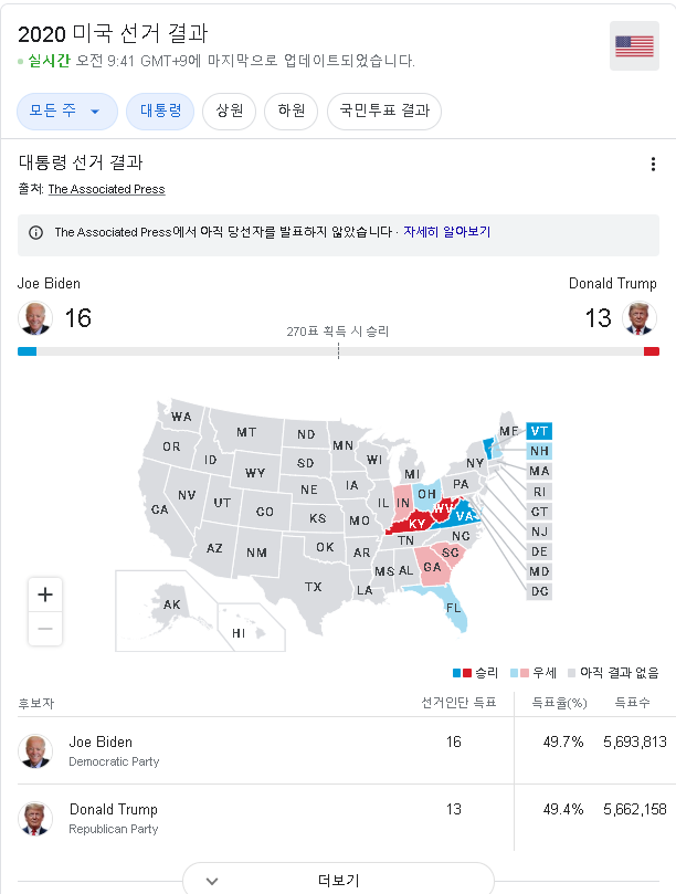 1. 구글에서 "미국대선" 검색하기