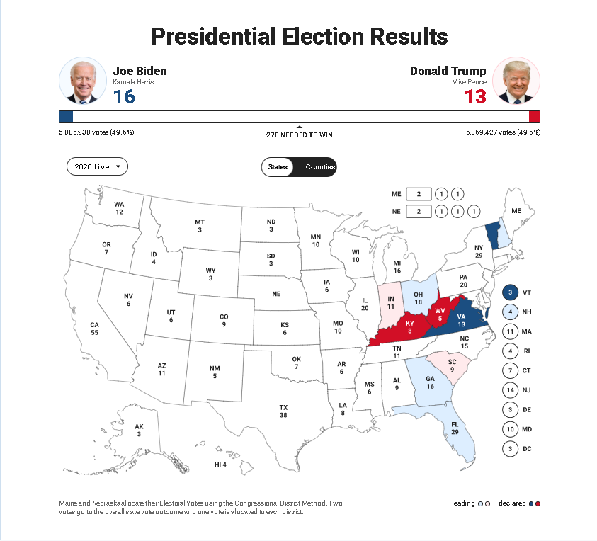 Follow the latest race results, candidates, and events leading up to the 2020 Presidential Election.
