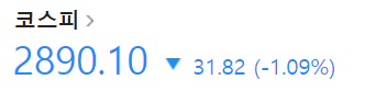 금일 코스피는 31.82 포인트가 하락하여 2900선 이하로 떨어졌습니다.