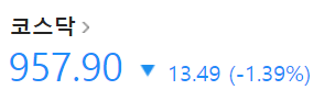 코스닥 또한 13.49퍼센트 하락하여 코스피와 비슷한 양상을 보이고 있습니다.