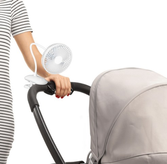 유모차의 필수템 유모차에 설치하면 손선풍기를 계속 들고 있을 필요가 없어요! 아기에게 시원한 바람을 지속적으로 제공할 수 있어서 유모차족들에게는 정말 은총템이에요.